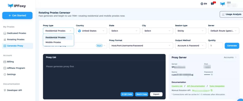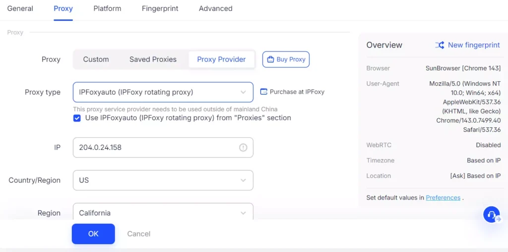 Use professional global residential proxy providers such as IPFoxy Proxies to obtain real residential IPs from target countries. Residential IPs are closer to real users and less likely to be blocked by ad platforms or risk control systems.